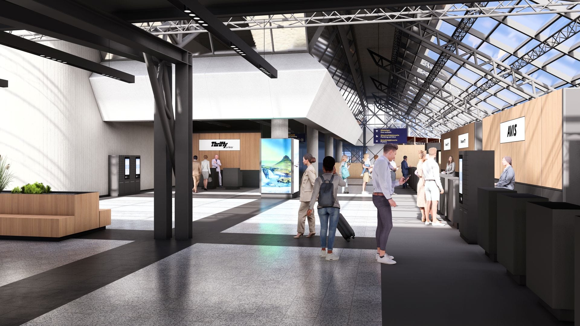 While construction of improved facilities for car rental companies is ongoing, their service has been moved to temporary facilities just outside the terminal. It is expected that this work will be completed in the spring, when the new service counters will be brought into use. At the same time, the number of car rental companies with facilities inside the terminal will increase from three to four.
