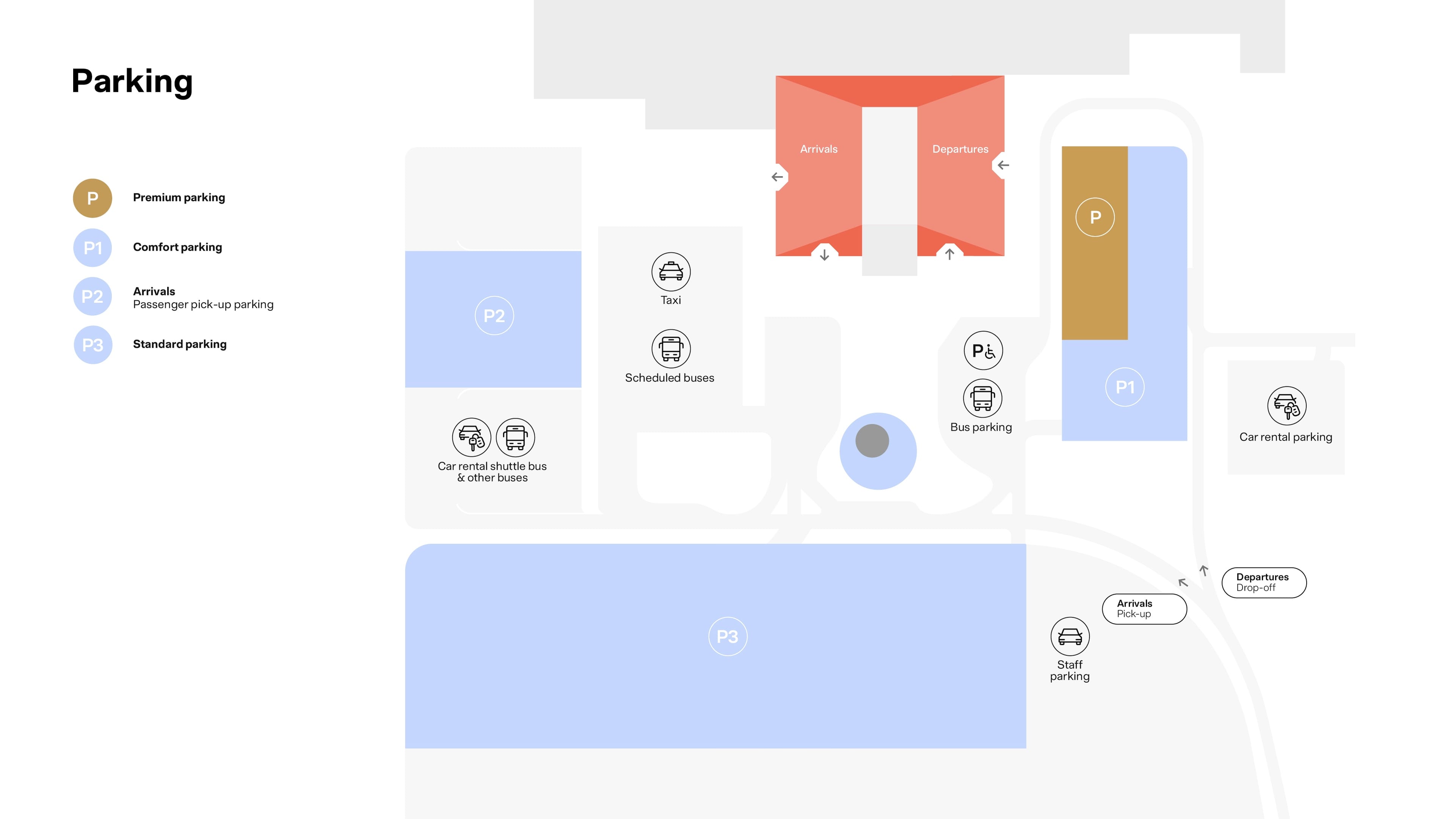 Maps of parking option around Keflavik Airport. Parking prices can be found here.